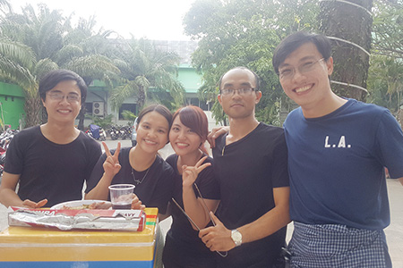 Sau buổi tổng vệ sinh là buổi tiệc “BBQ gắn kết” do Phòng R&D tổ chức, với mong muốn mang đến cho các anh chị em bầu không khí thư giãn, thoải mái. Mọi người rất hào hứng với buổi tiệc, mỗi phòng ban đều tham gia trong việc chuẩn bị món ăn, góp phầ n làm cho thực đơn bữa tiệc nướng hôm đó thêm phong phú với các món: sườn nướng, mực nướng và salad trộn dầu giấm.