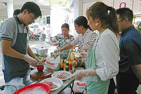 Sau khi Ban Tổ Chức tiến hành kiểm tra thực phẩm, nguyên liệu của 11 Đội dự thi, đúng 16h45, Hội thi bắt đầu. Bên Đội Nấu ăn, các đầu bếp và phụ bếp nhanh chóng thực hiện công việc của mình. Mỗi đầu bếp đảm nhiệm một món sở trường của mình: anh Châu Minh Thiện chịu trách nhiệm nấu món Miến xào Singapore, món Súp cua và món Rau câu ngũ sắc được thực hiện bởi chị Nguyễn Thị Huyền và chị Lâm Thị Diễm Mỵ. Mùi xào nấu thơm phức xen lẫn những màn tranh luận về cách chế biến càng khiến không khí trở nên nhộn nhịp. Tuy nhiên, khi đứng kế bên Đội Bếp của Trường Việt Mỹ, nhìn tác phong chuyên nghiệp và sự chuẩn bị hoành tráng của họ, cả Đội Viễn Đông - Toàn Lực cũng không tránh khỏi áp lực nhỏ về tâm lý, nhưng với sự quyết tâm và tinh thần đoàn kết cùng với sự hỗ trợ, cổ vũ nhiệt tình của các anh chị em trong Công ty, các đầu bếp của Đội vẫn hoàn thành xuất sắc bài thi của mình. Cả đội đã nhanh chóng trình bày những món ăn dự thi một cách sinh động và đẹp mắt; đồng thời đảm bảo vệ sinh, an toàn thực phẩm.